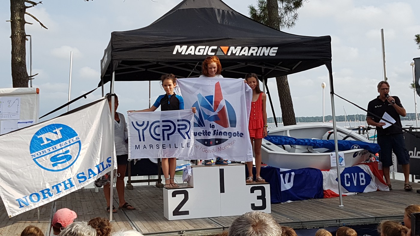 Après 3 jours de régate dont 1 raid brillamment remporte par Clémence FAVREL chez les Open féminines les 2 dernières jours de phases finales démarrent aujourd’hui. Presque tous les benjamins se qualifient sur le rond or, Jules pointe à la 12ème place sur les 103 benjamins. côté minimes et open les ronds ne sont pas encore annoncés.
