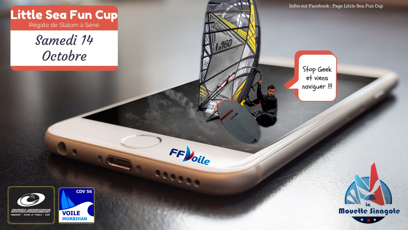Le samedi 14 octobre se tiendra une régate Slalom à La Mouette Sinagote à Séné. Confirmation ou infirmation la veille, en fonction du vent (13/14 noeuds minimum nécessaires), sur le compte Facebook de Little Sea Fun Cup (https://www.facebook.com/LittleSeaFunCup/). En pièce-jointe voici l’avis de course de les instructions de course.