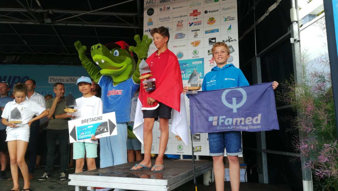 C’est une très haute performance que réalise Côme VIC MOLINERO sur cette Coupe Internationale d’Eté d’optimist. Alors que le plus haut niveau était présent parmi les 145 coureurs, Côme se classe premier français derrière le monégasque Lénoardo BONELLI et le hollandais Floris SCHRAFFORDT et décroche le bronze à l’issue de cette semaine de régate. On peut noter également la performance de Gabin BALY, 3ème au Raid et 8ème au général (4ème français). Une très belle réussite pour l’entraîneur Pierre-François CATON, dit Pifou, après la sélection de nombreux morbihannais de son groupe aux Championnats de France Optimist et la victoire à cette même CIE lors de la course par équipes. On peut également féliciter Alma VIC MOLINERO qui a officié en tant que jeune arbitre lors de cette régate. Ces résultats représentent une très belle vitrine pour Séné / Vannes / Golfe du Morbihan Agglomération.