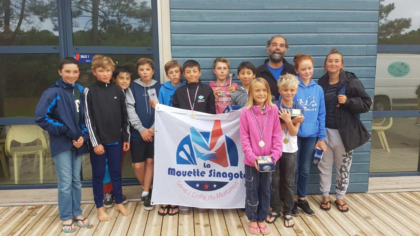 Pour la troisième régate du championnat départemental, à Lorient, La Mouette Sinagote remporte à l’issue de 4 manches musclées le classement des clubs grâce à un tiercé gagnant: Gabin, Côme et Jules prenent les trois première place du Morbihan de la régate en optimist performance. En benjamins Sam et Sacha prennent les 2ème et 3ème place derrière Baptiste Lethuillier de La Trinité sur mer , Clémence et Maiwenn prènent la 2ème et 3ème place derrière Klara Champs du CNL Lorient. La jeune Léonie de 2011 s’est brillament illustrée dans sa catégorie d’âge , les poussins. Bravo les jeunes et merci Clara et Pifou les coaches.