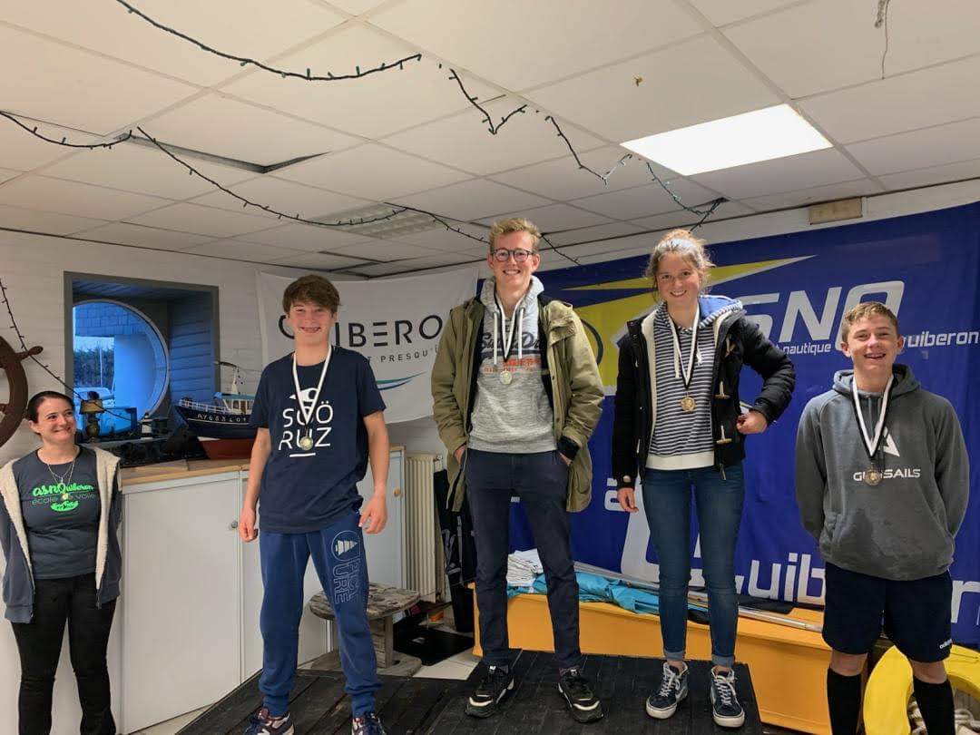 Une régate départementale slalom à été organisée ce jour par l’ASN Quiberon dans 13 à 16 nœuds de vent. Gaspard CARFANTAN gagne les 5 premières manches et remporte l’or. Gabriel GILBERT remporte quant à lui la dernière manche et finit 4eme. Octave CARFANTAN termine 7ème, Jean-François GUILLOTIN 10ème et Tom NICOLLE 12ème. Merci au coach Jérôme ZIELINSKI et à L’ASN Quiberon pour l’organisation et la photo.