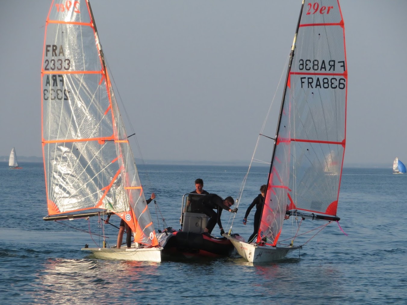 Quatre équipages Morbihannais se sont rendus au championnat de France de 29er à Brest cette semaine. Parmi eux, trois équipages de la Mouette Sinagote (Henri Sandou et Léon Petitjean Roger Mathé, Jules Pierron et Pierre Lelièvre, Jules Le Martelot, Thibault Lhote.) les meilleurs mondiaux de ce bateau très vivant sont français.