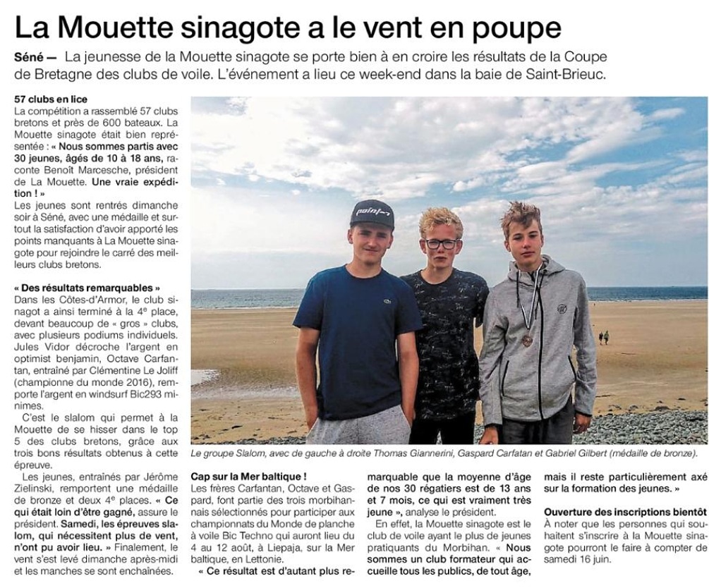 Les résultats de la coupe de Bretagne sont tombés, ils sont excellents, La Mouette Sinagote termine 3ème breton sur 57 clubs en lice et premier club du Morbihan.