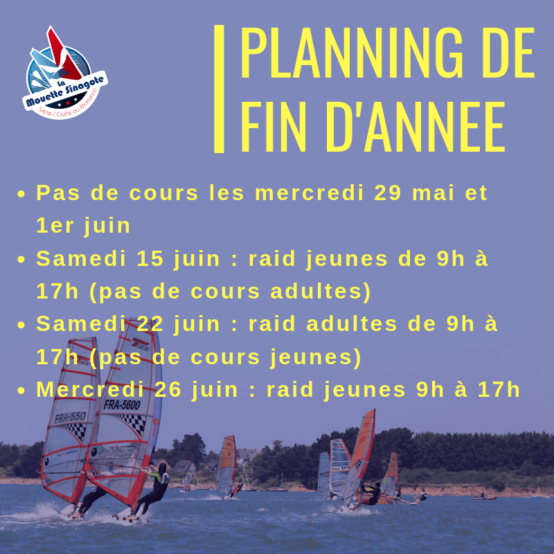 - Le samedi 22 juin ce sera le raid adultes et dernier cours adultes (sauf catamaran)