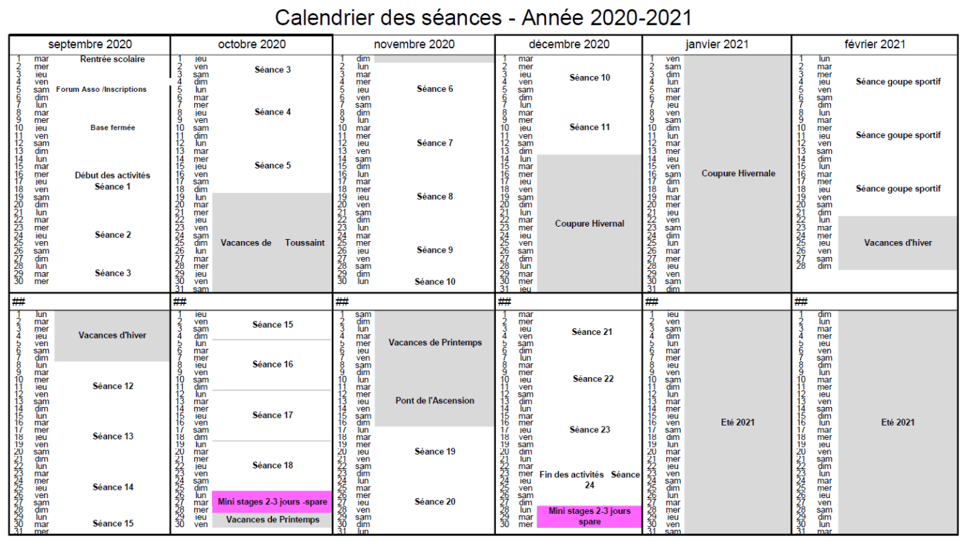 Voici le planning de l’année en PJ (mis à jour le site internet dans la rubrique calendrier). Bonne journée et bonne saison à toutes et à tous.